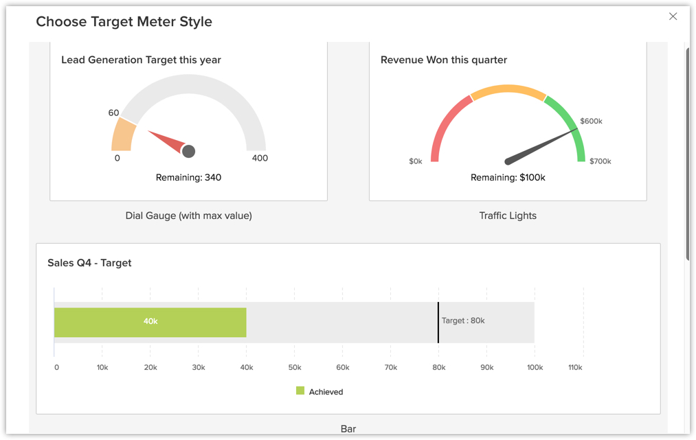 - Nella pagina Add Target Meter, fare clic sullo Stile del Target Meter desiderato.