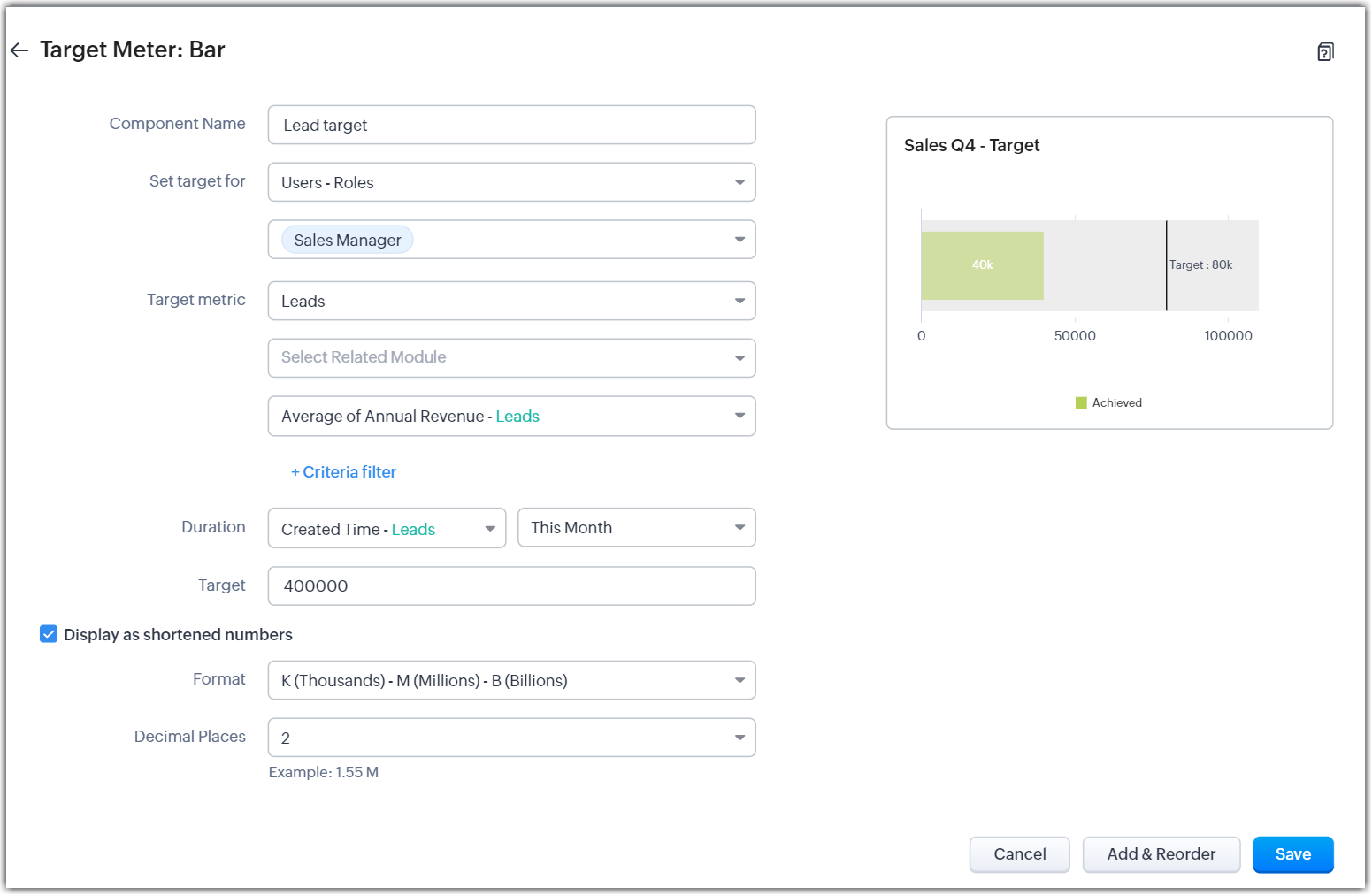 - Fare clic su Save per salvare il Target Meter in una dashboard.