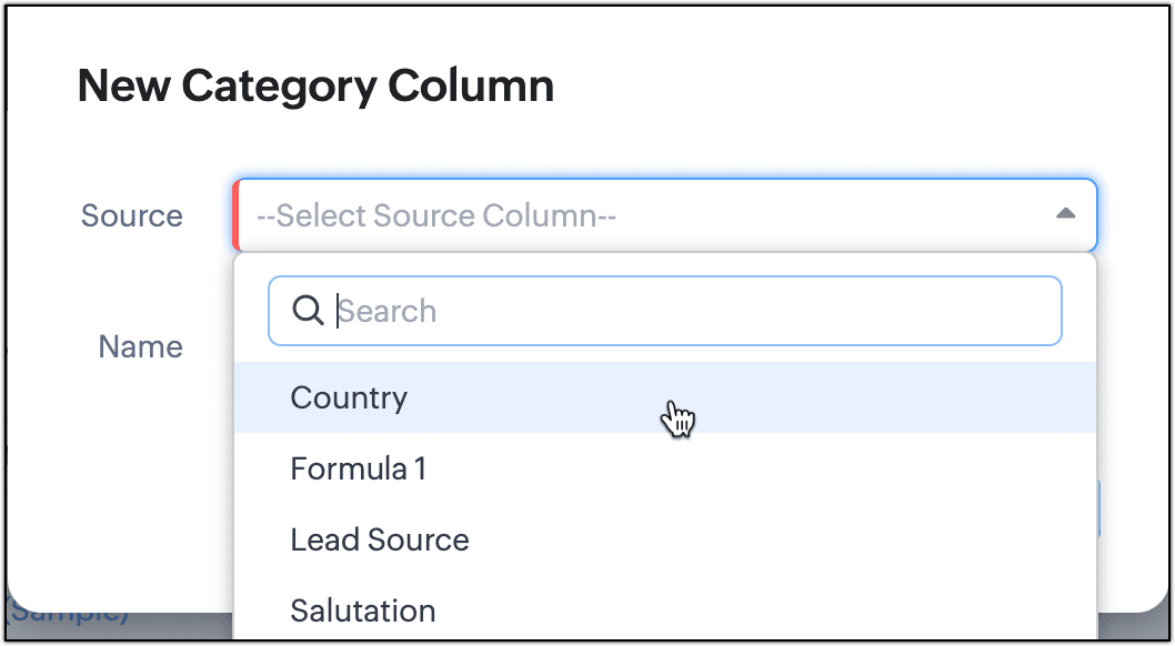 - Selezionare la colonna sorgente da uno dei campi elenco di selezione disponibili, che in questo esempio è 'Country'.