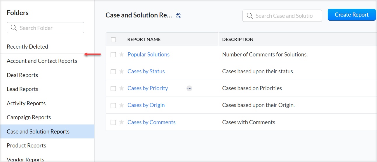 - Acceda al Suo Zoho CRM e faccia clic su Report.