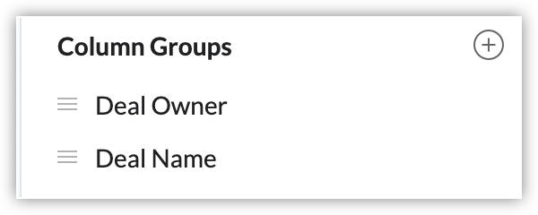 Per raggruppare le colonne, faccia clic sull'icona + accanto a Gruppi colonne e scelga i campi in base ai quali desidera raggruppare dall'elenco.