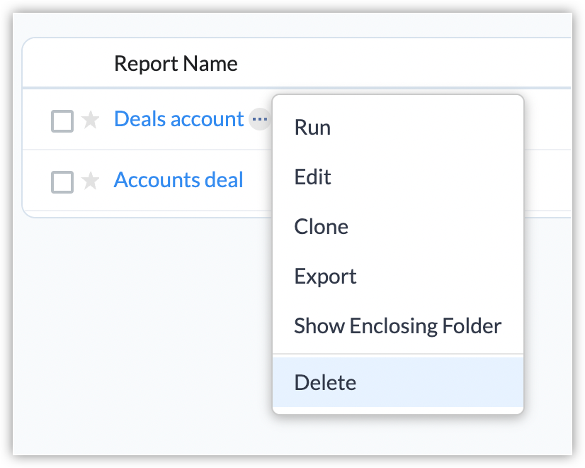 Può modificare il nome di una cartella, condividerla all'interno della Sua organizzazione o nasconderla dall'elenco. Queste azioni possono essere selezionate facendo clic sull'icona accanto al nome della cartella nella pagina dell'elenco Report.