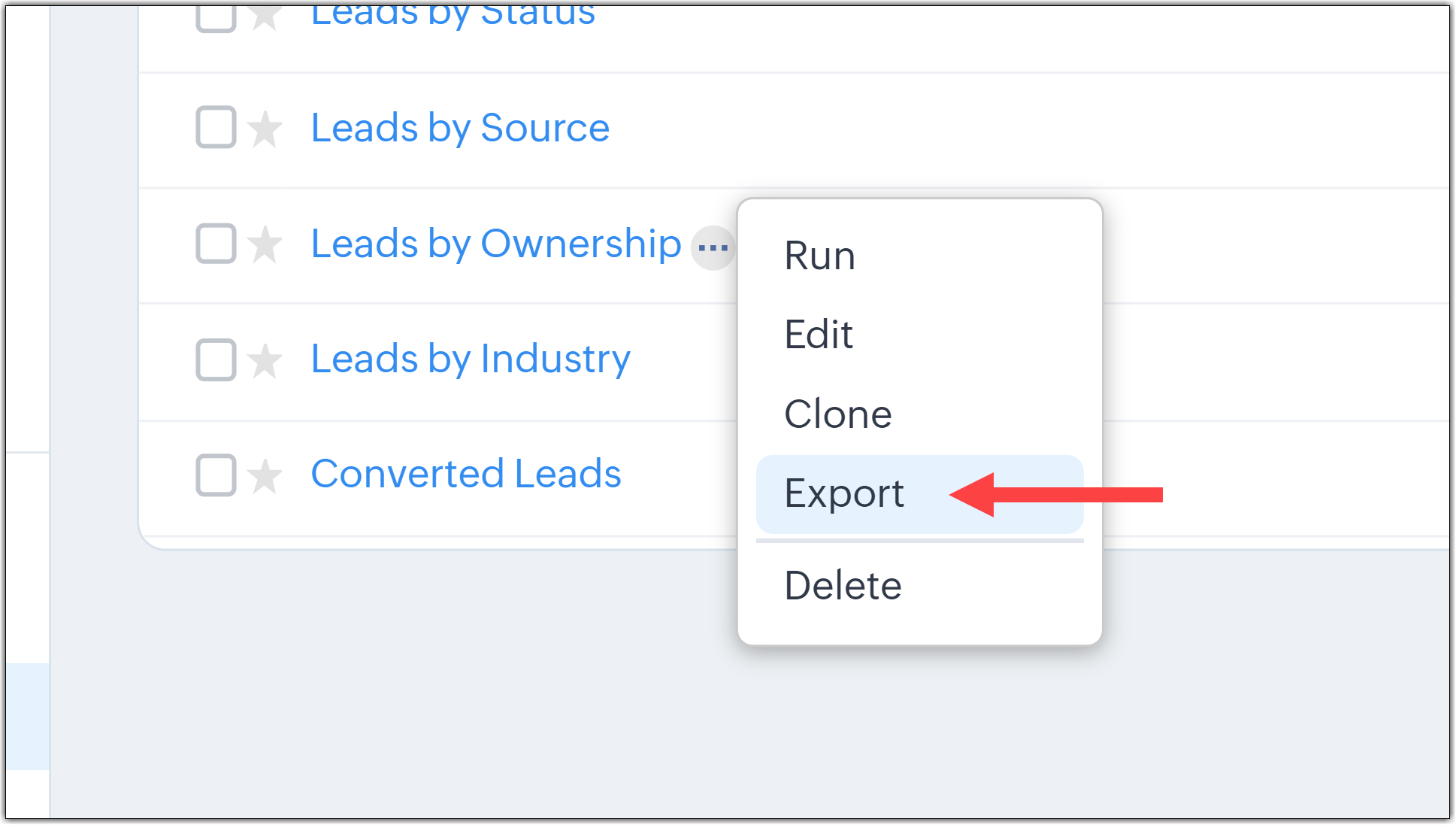 - Passi il mouse sul report che desidera esportare e faccia clic sull'icona altro