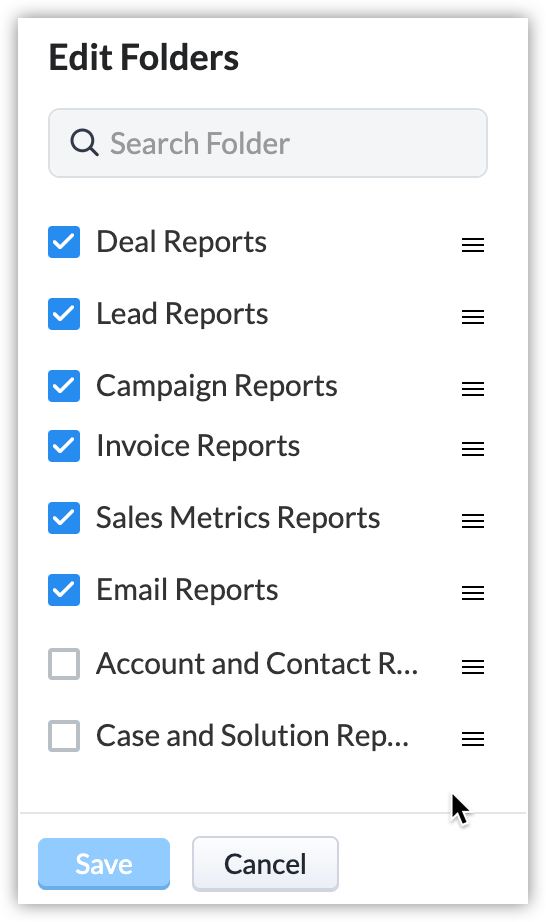 Gli utenti con l'autorizzazione Gestisci report possono creare, modificare e condividere le cartelle dei report.