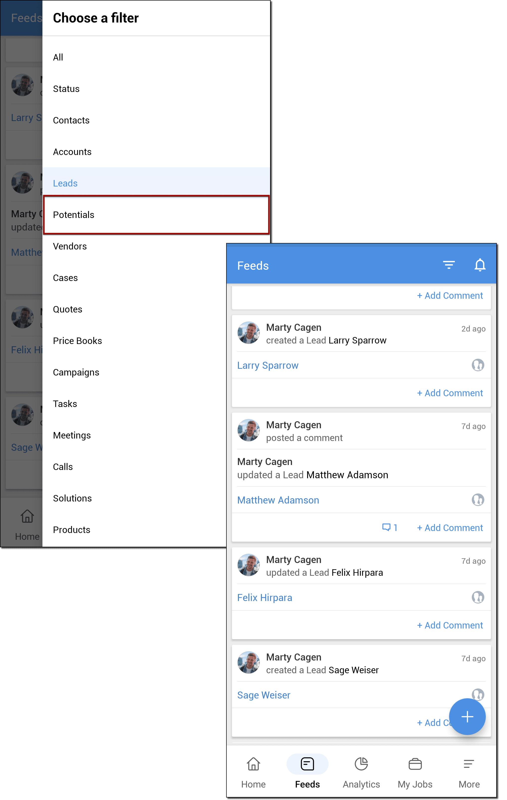 I Feed in Zoho CRM per Android Le permettono di collaborare con i Suoi colleghi e tenere tracci