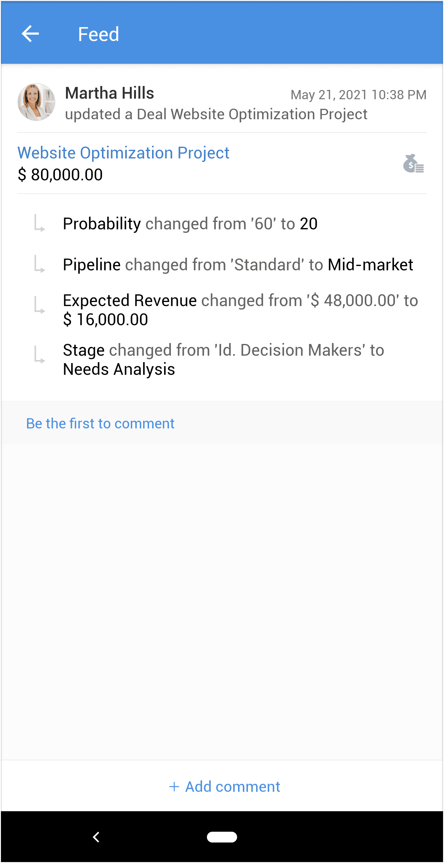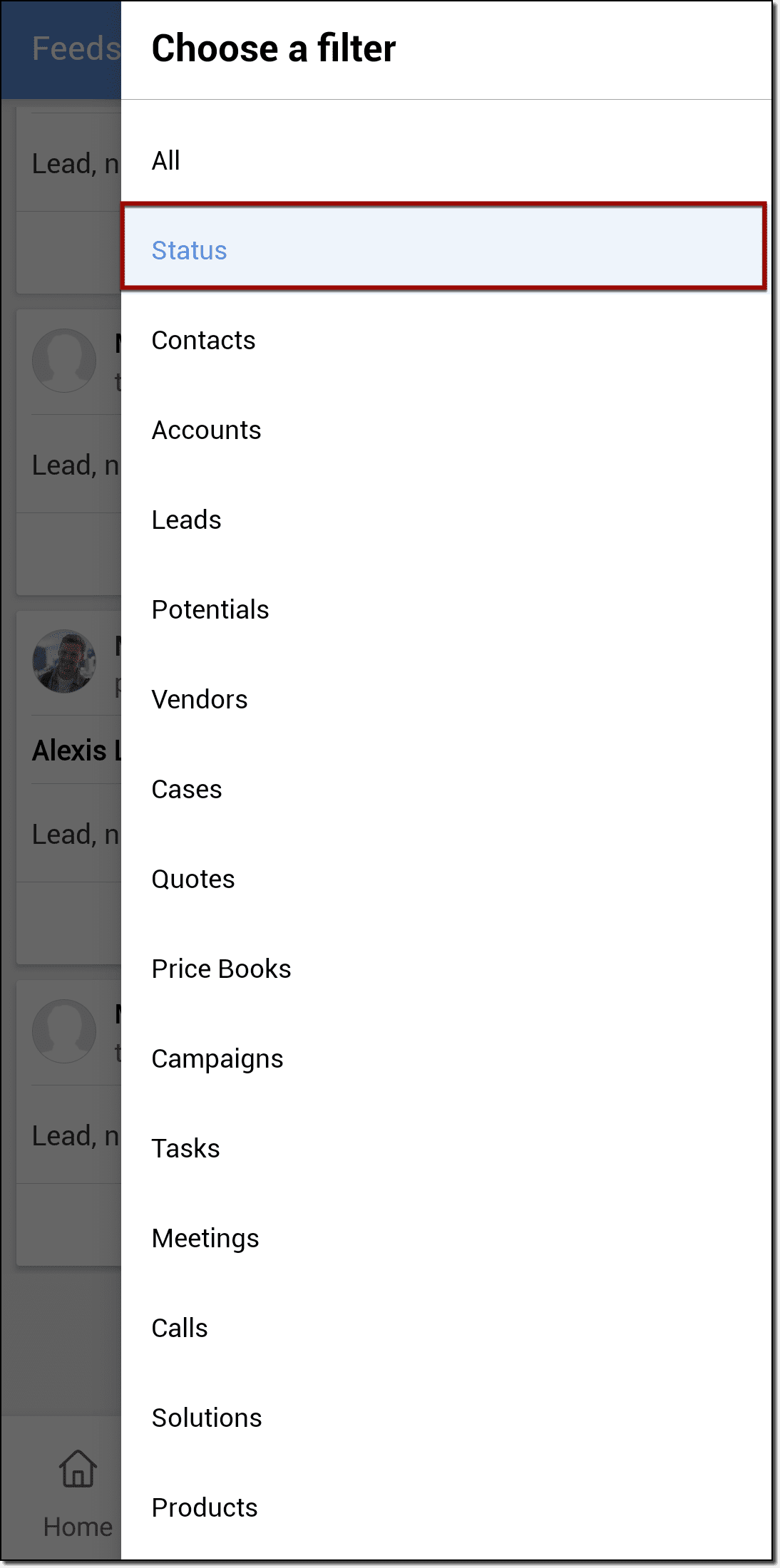 - Vada su Feed nella Sua app Zoho CRM per Android.
