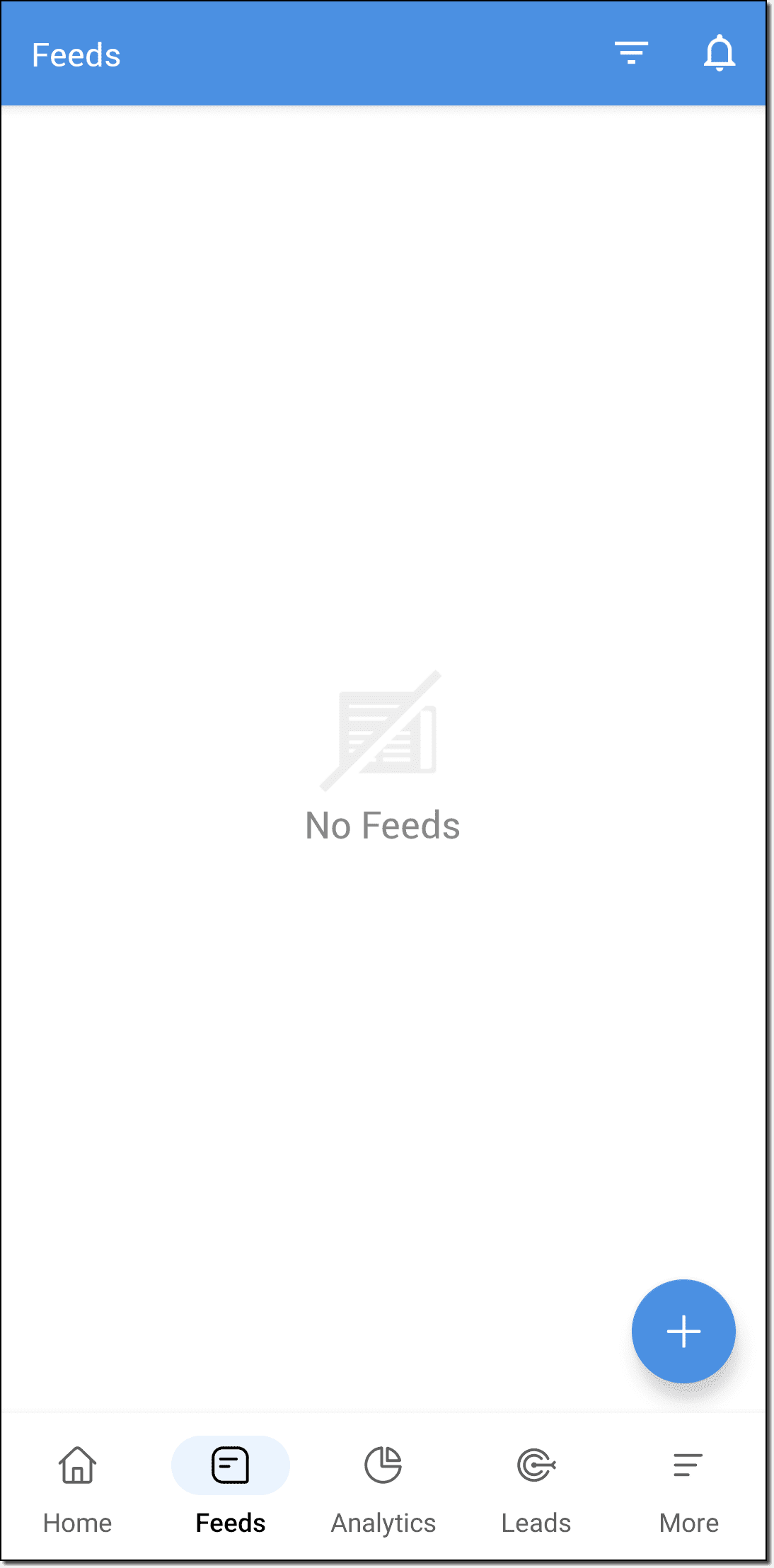 - Vada su Feed nella Sua app Zoho CRM. Apparirà un elenco di feed.