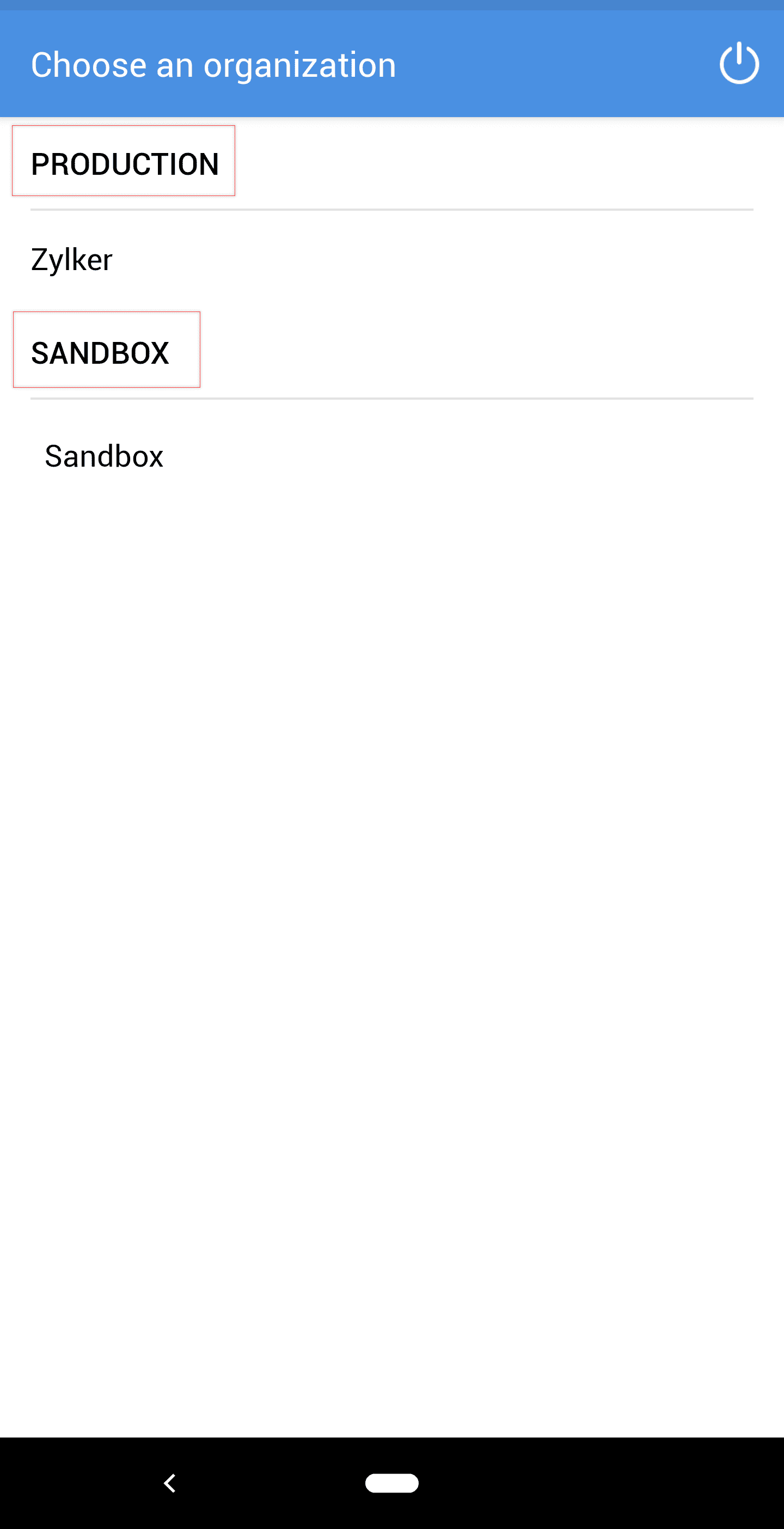 Questa opzione apparirà solo se si è stati aggiunti a più di un'organizzazione o sandbox. Una volta effettuato l'accesso al proprio account, scegliere l'organizzazione CRM e il sandbox a cui si desidera accedere sul dispositivo.
