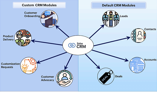 Creare nuovi moduli per gestire ogni processo unico rivolto al cliente all'interno di Zoho CRM