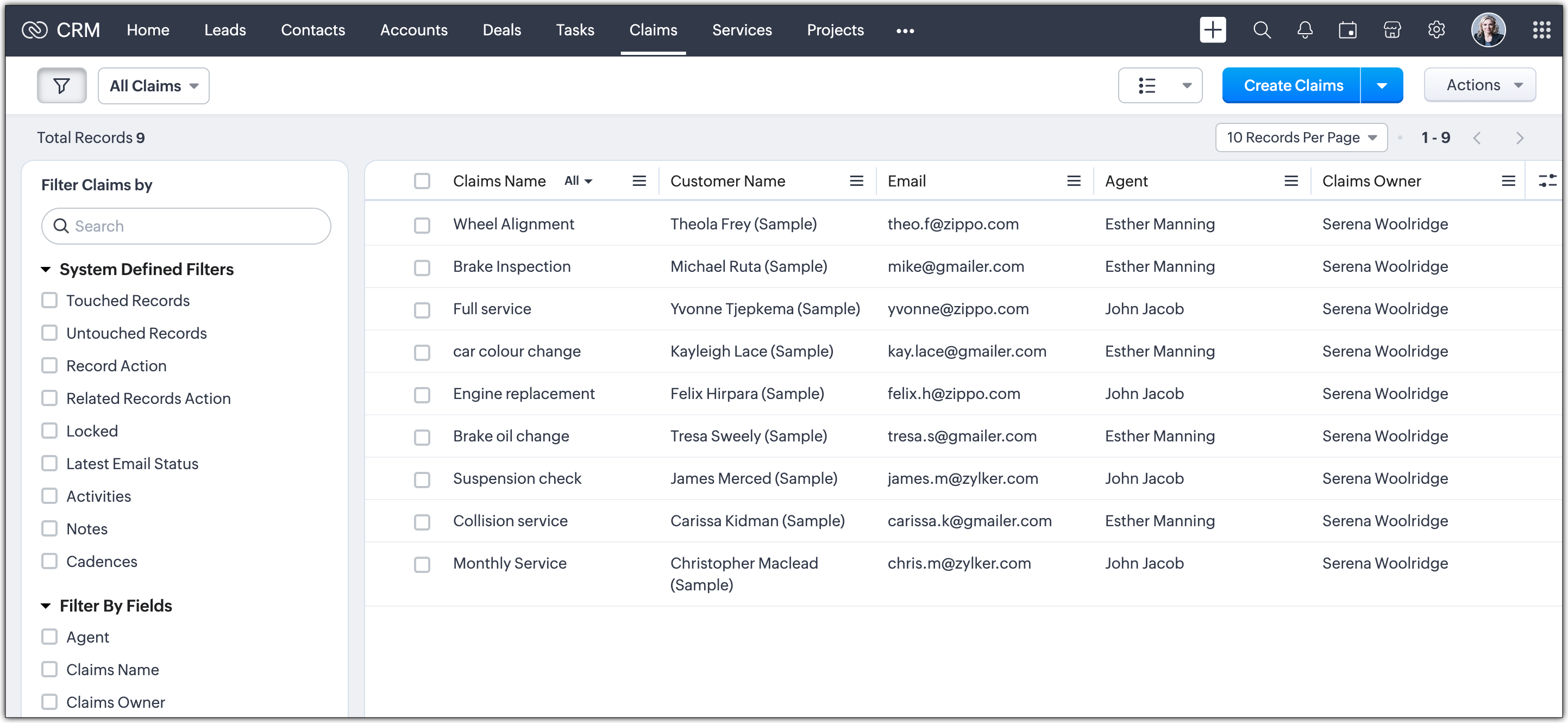 5. Gestione Sinistri: Utilizzare un modulo personalizzato per gestire i sinistri assicurativi presentati dai clienti. Ad esempio, SafeHaven Insurance, una compagnia di assicurazioni auto con sede a Chennai, utilizza Zoho CRM per supportare la propria attività in crescita. Con un'ampia base clienti e una varietà di polizze assicurative per diversi scenari, una gestione efficiente dei sinistri è fondamentale. Per raggiungere questo obiettivo, possono creare un modulo personalizzato chiamato "Nuovi Sinistri" per registrare e tracciare i sinistri presentati dai propri clienti. Questo modulo consente loro di assegnare ogni sinistro a un agente per una gestione tempestiva e garantisce che i sinistri vengano elaborati in modo efficiente, offrendo un'esperienza fluida ai propri clienti.