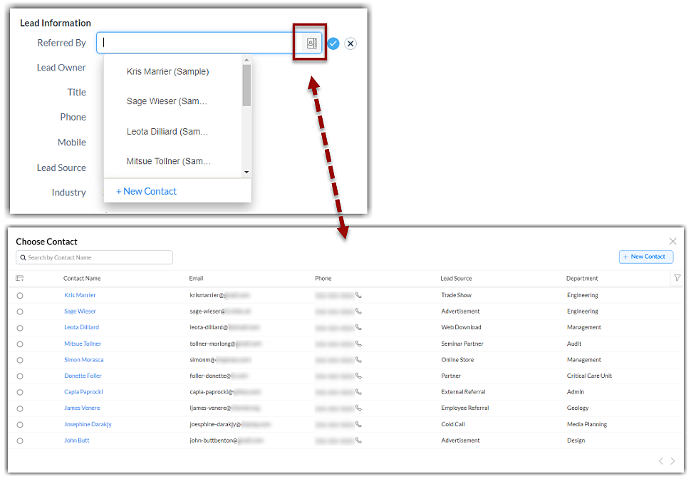 Modulo si riferisce alle schede Lead, Account, Contatti, ecc.