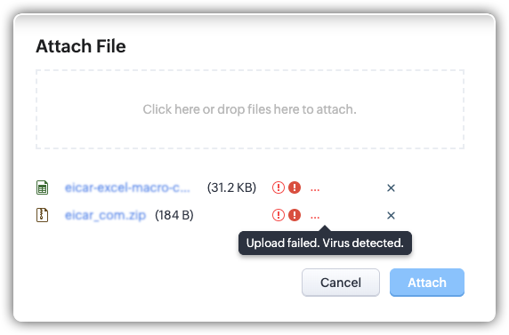 - Il sistema esegue una scansione antivirus sui file caricati prima dell'invio. Se viene rilevato un virus, dovrà caricare un file diverso.