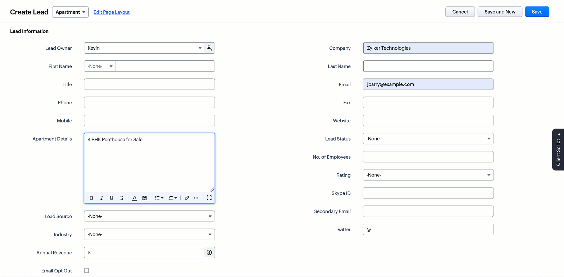 - Interfaccia utente: Il campo multilinea fornisce una casella di testo intuitiva che può essere facilmente accessibile e modificata dagli utenti del CRM, garantendo un'esperienza utente fluida.
