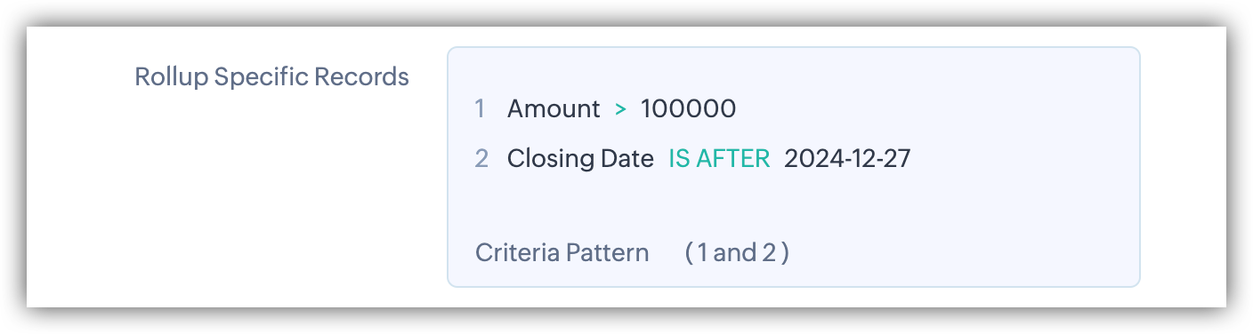 - È possibile aggiungere criteri aggiuntivi al campo rollup per filtrare e aggregare solo i dati più rilevanti per le proprie esigenze.