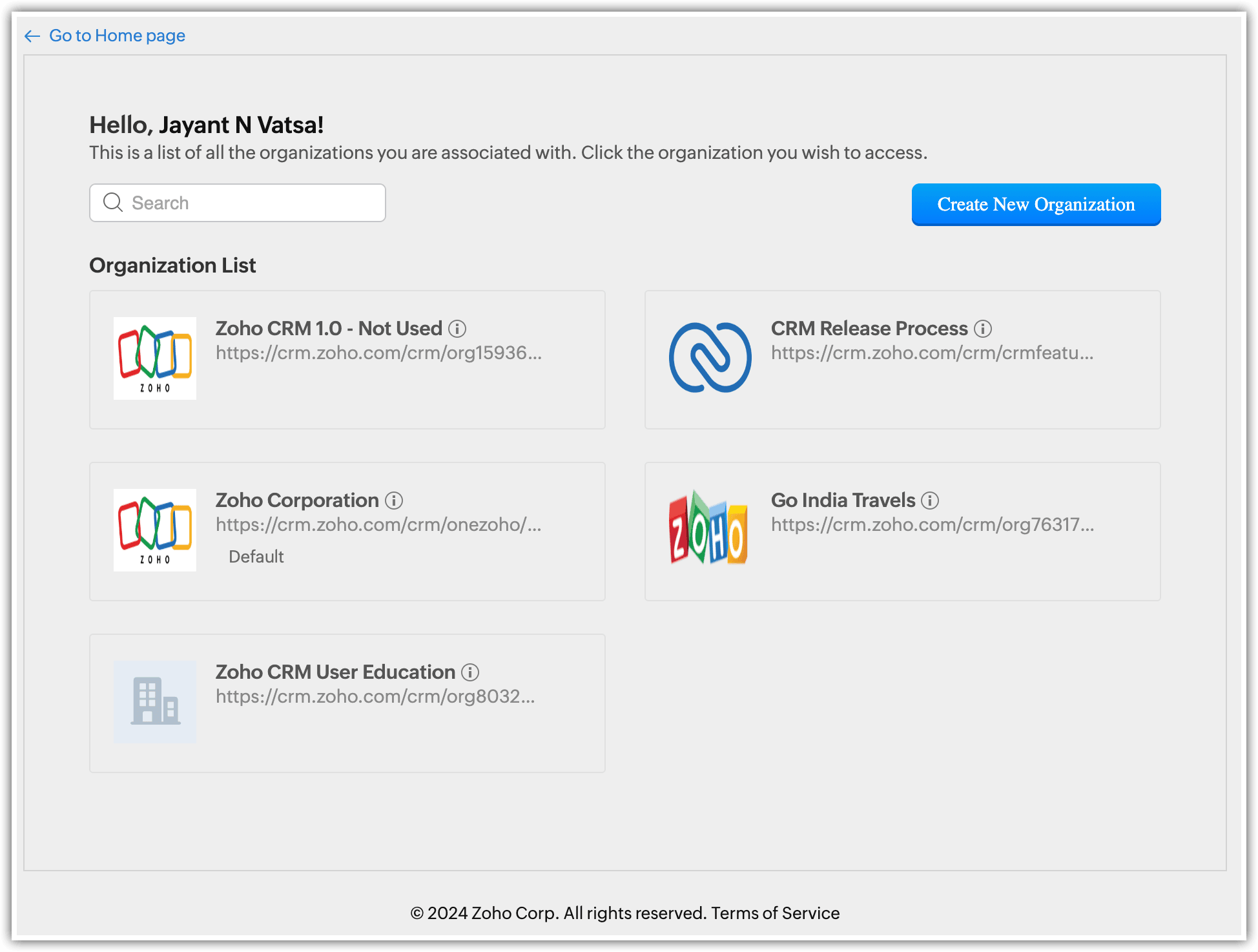Quando si accede all'account CRM della propria organizzazione, il server utilizza questo Organization ID incorporato nell'URL per identificare e collegare l'utente all'organizzazione corretta. Questa mappatura è uno-a-uno, il che significa che l'indirizzo email utilizzato per creare l'account Zoho CRM è collegato a un Organization ID univoco generato automaticamente, che può essere associato a un solo indirizzo email. Pertanto, l'Organization ID sarà sempre univoco.