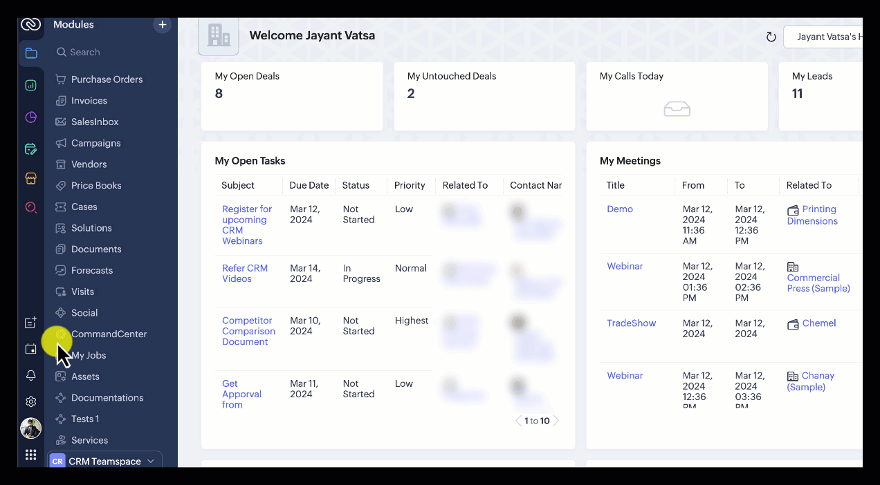 Le schermate in questo articolo sono in lingua inglese. L'interfaccia di Zoho CRM potrebbe variare in base alla versione e alla lingua impostata.