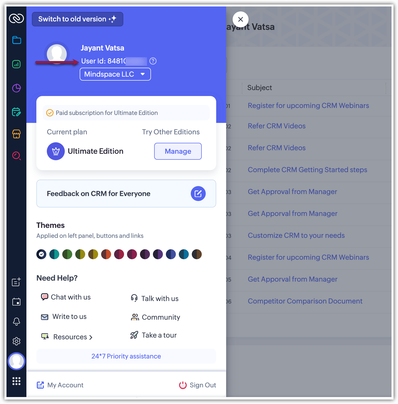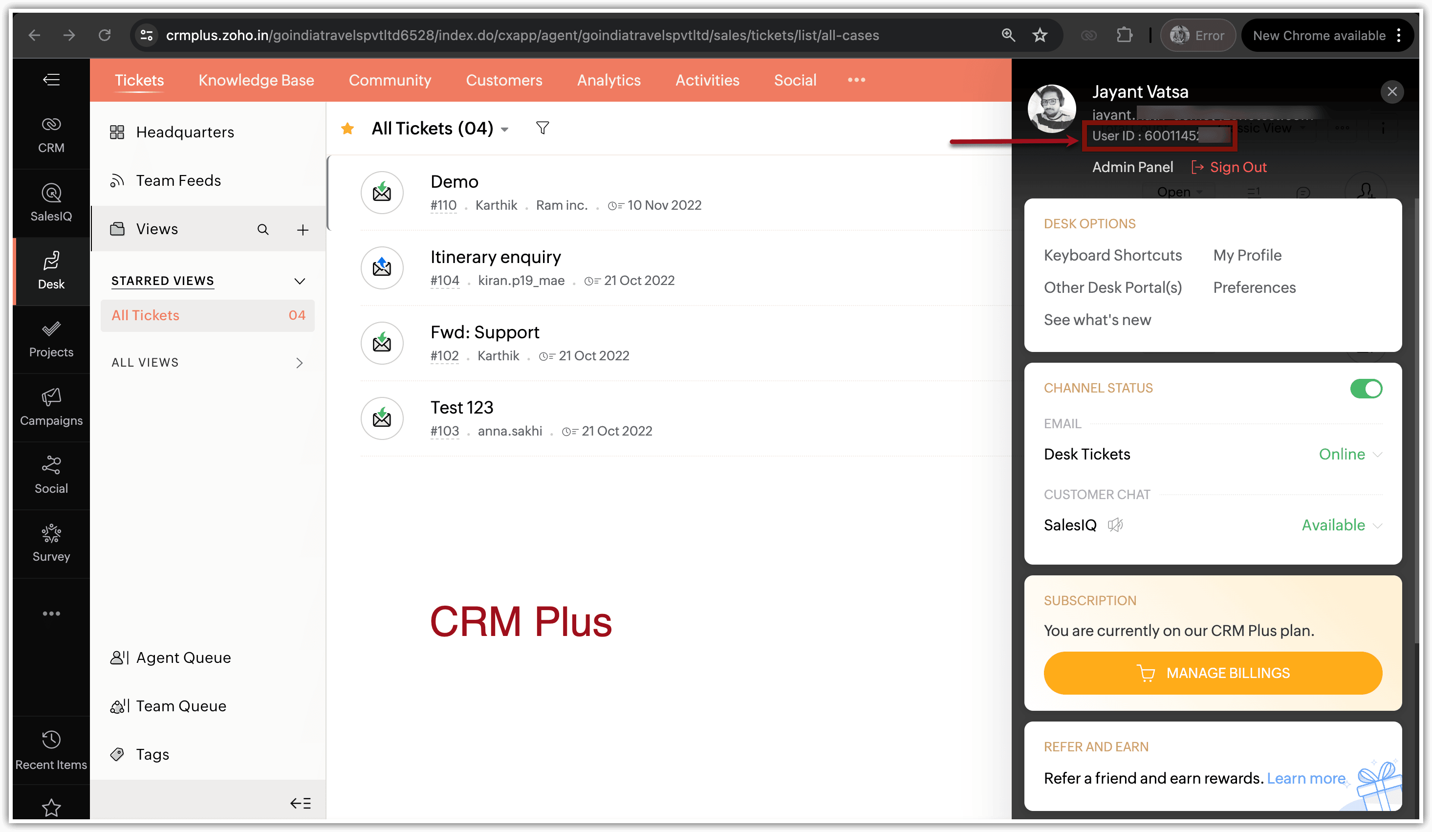 Lo User ID per un CRM standalone è univoco per quel CRM, spesso chiamato CRM User ID. Tuttavia, per i CRM inclusi in bundle come CRM Plus o Zoho One, un singolo User ID è condiviso tra tutti i prodotti di quel bundle, come Zoho Desk, Zoho Projects, Zoho Campaigns, Cliq, Meetings e altri.