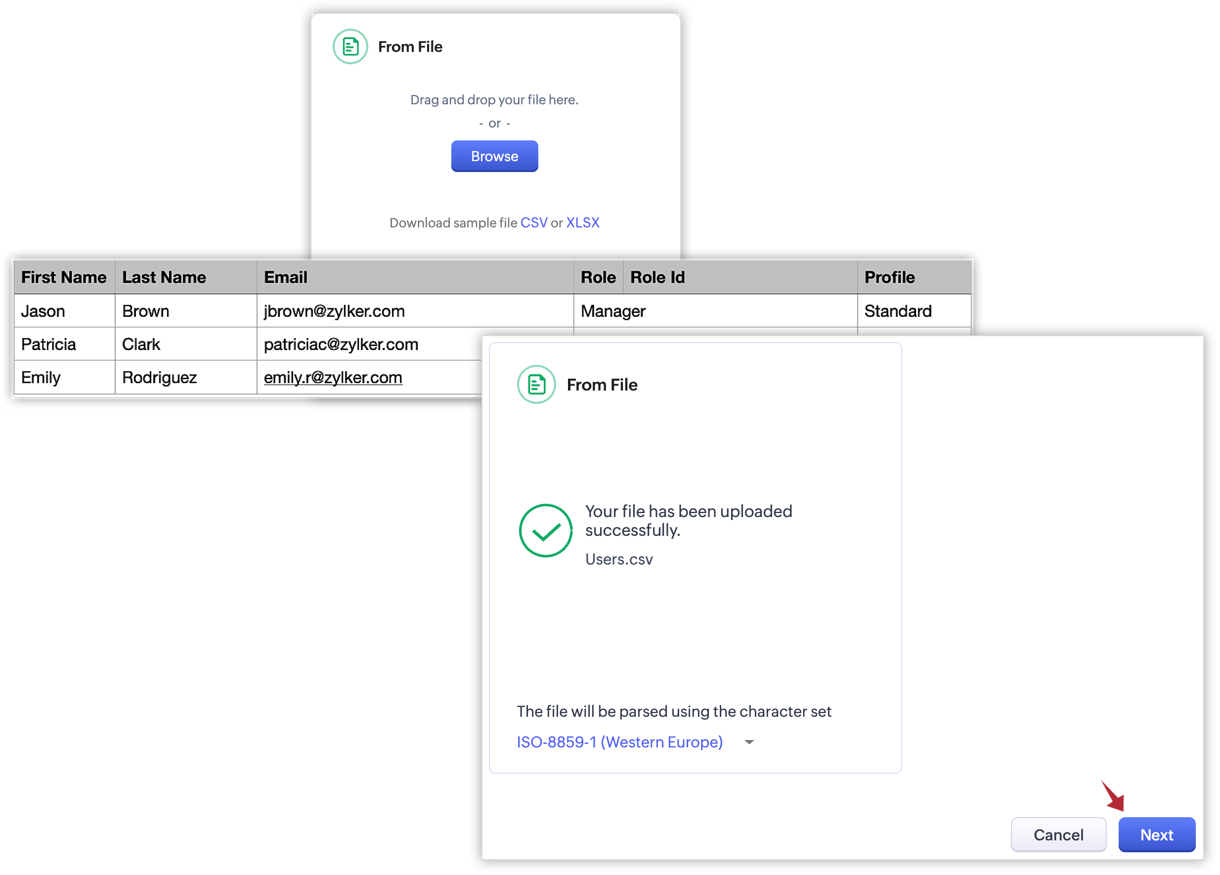- Durante l'importazione, gli utenti vengono associati al Role e al Profile utilizzando Role Name o Role ID e Profile Name o Profile ID.
