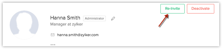 - Se gli utenti vengono importati nel sistema, gli inviti via email devono essere inviati manualmente facendo clic sul pulsante reinvita . Altri dettagli come numeri di telefono, indirizzo, foto, fax, sito web, data di nascita, lingua, ecc. possono essere inseriti dopo l'aggiunta dell'utente.