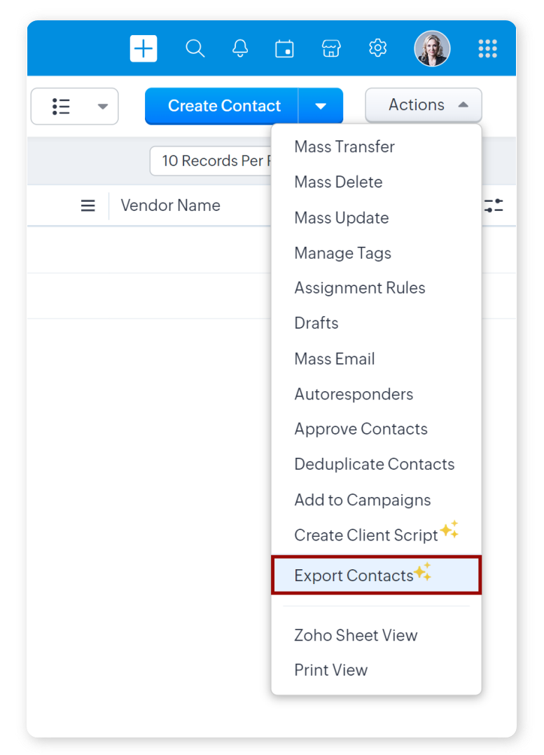 È possibile esportare determinati record selezionati da Zoho CRM?