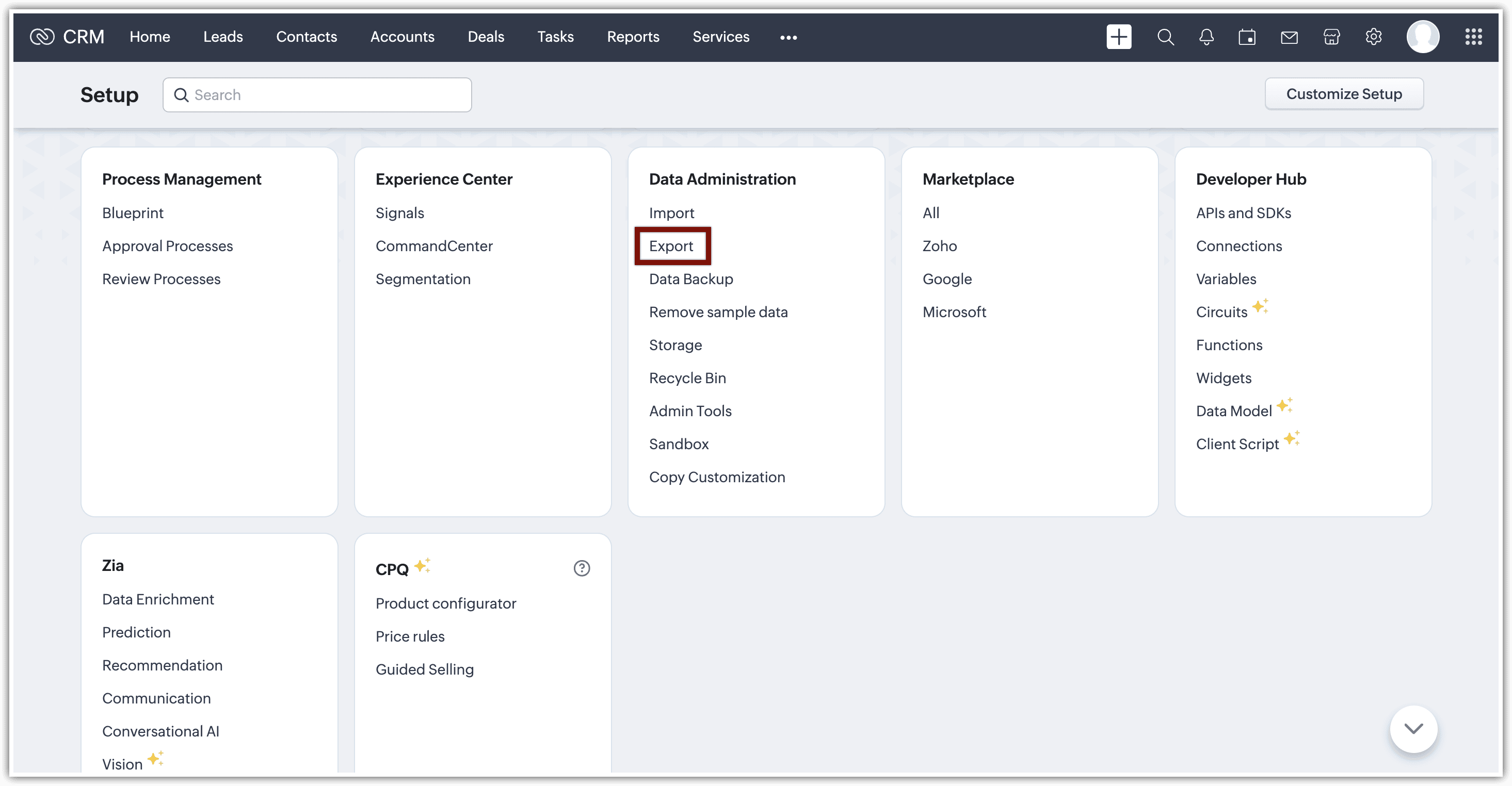 Come si esportano i dati da Zoho CRM