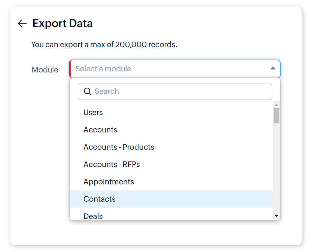 Se si verificano problemi con i formati dei dati dopo l'esportazione, come problemi con i delimitatori CSV o la compatibilità con Excel, gli utenti dovrebbero verificare le impostazioni regionali del sistema e assicurarsi che le opzioni di formato corrette siano selezionate durante l'esportazione. Per ulteriori problemi, contattare il supporto di Zoho CRM per la risoluzione.