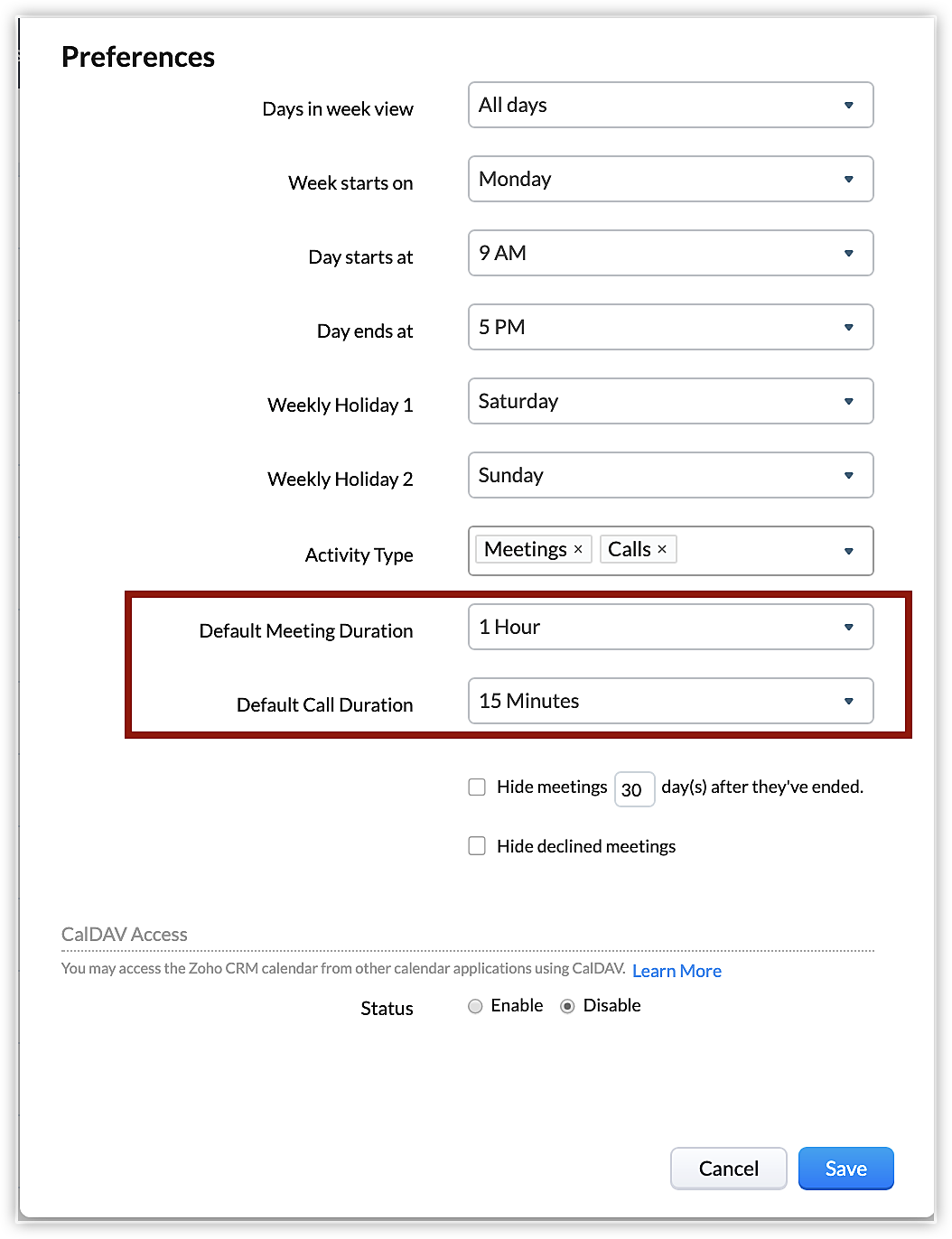 In Zoho CRM sono disponibili due categorie di prenotazioni calendario, che sono le seguenti: