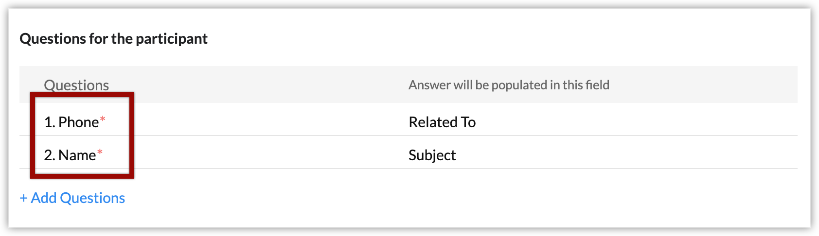 Durante la mappatura di una risposta, può mapparle a qualsiasi campo supportato nei moduli riunioni e chiamate del CRM, rispettivamente.