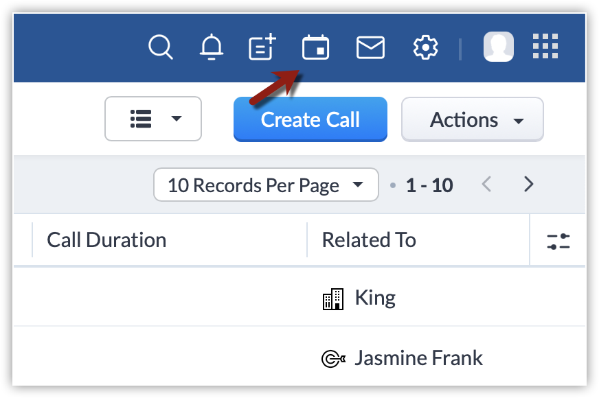 Faccia clic sull'icona Calendar nei moduli del Suo CRM.