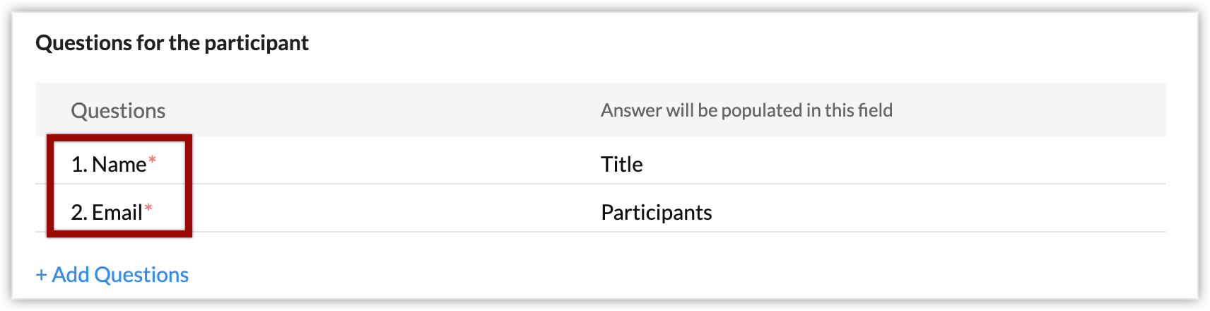 I campi nome e e-mail sono obbligatori per la prenotazione delle riunioni, mentre i campi nome e telefono sono obbligatori per le chiamate - tutti disponibili per impostazione predefinita nella Sua prenotazione calendario.