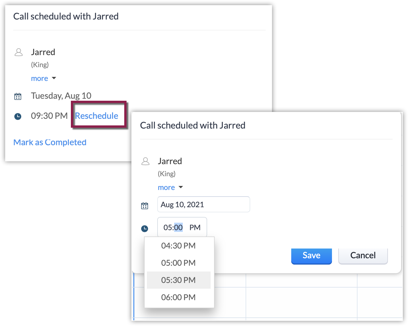 Faccia clic sulla chiamata desiderata e clicchi su Reschedule.