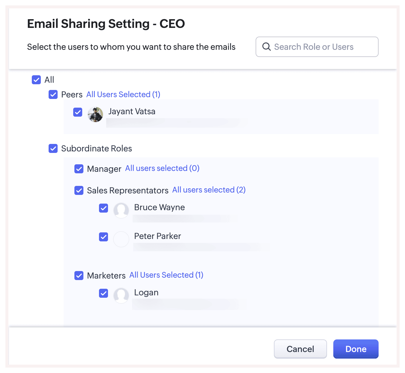 Sì. Zoho CRM consente di eseguire il backup delle email degli utenti disattivati.