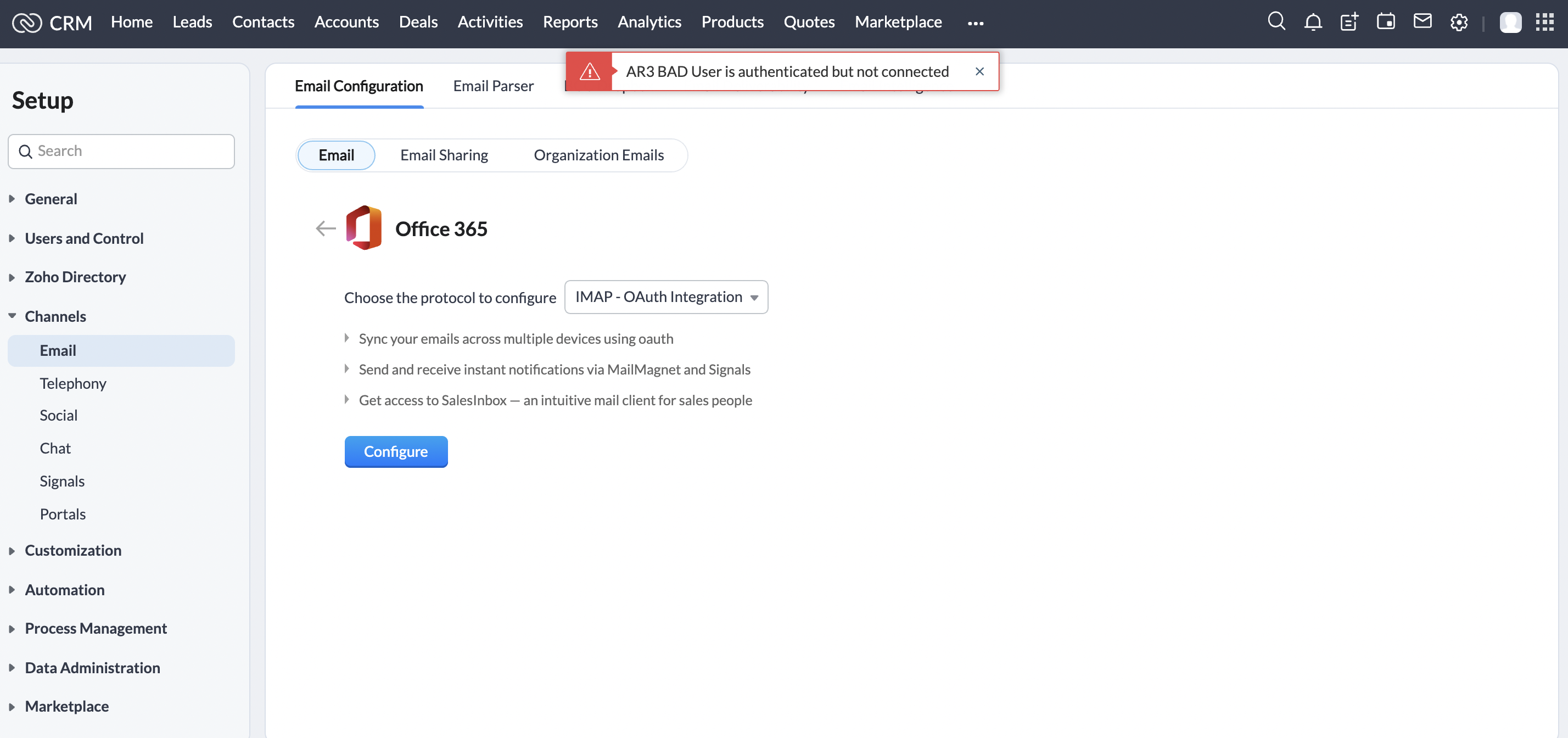 - Può anche sincronizzare il Suo account email in Zoho CRM utilizzando la configurazione IMAP.