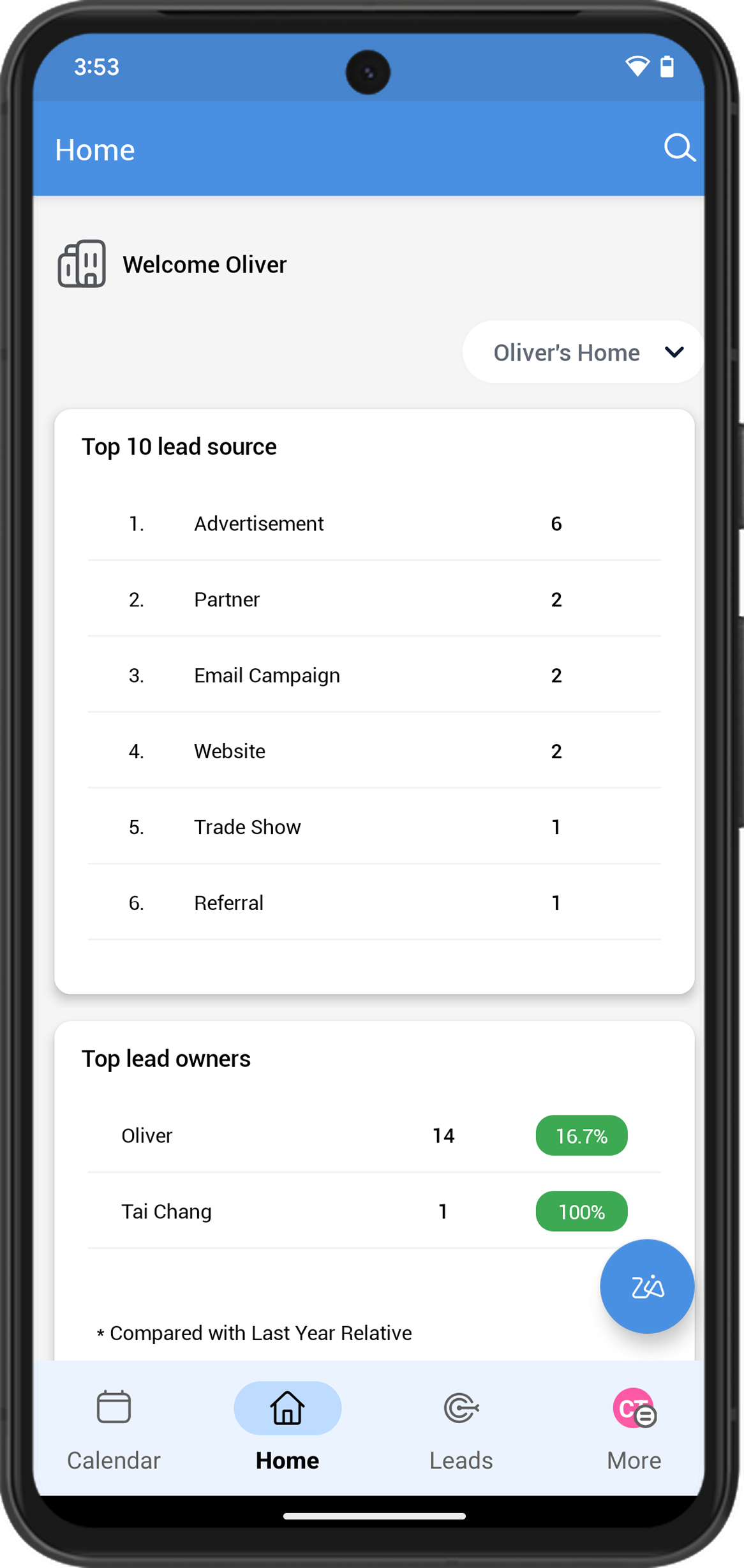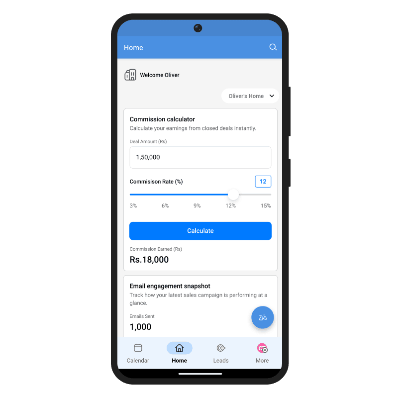 La homepage funge da strumento di monitoraggio dei progressi, riunendo tutti i dettagli importanti di cui ha bisogno, come riunioni, trattative, lead e altro.