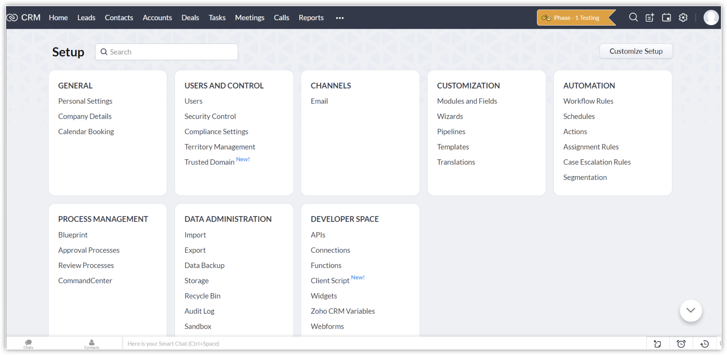 Le schermate in questo articolo sono in lingua inglese. L'interfaccia di Zoho CRM potrebbe variare in base alla versione e alla lingua impostata.