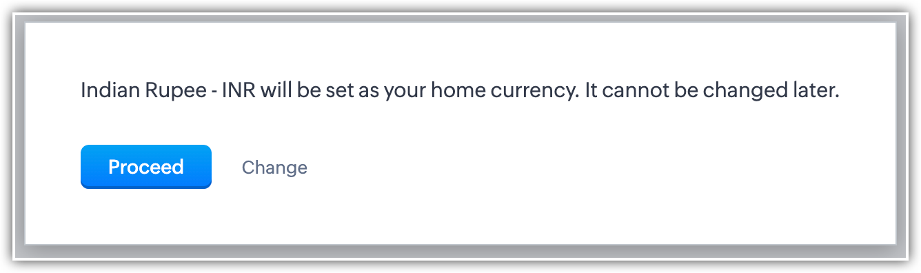 - Se accetta queste condizioni, invii un'email a support@zohocrm.com dall'indirizzo email principale del Suo account Zoho CRM. Resetteremo la funzione multi-valuta dal backend e potrà procedere con l'impostazione della nuova valuta principale nel Suo account.