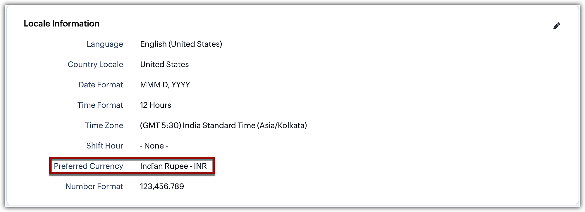 - Dopo l'attivazione, la valuta locale verrà cambiata nella Sua valuta principale. Può trovarla sotto Setup > Company Details > Locale Information.