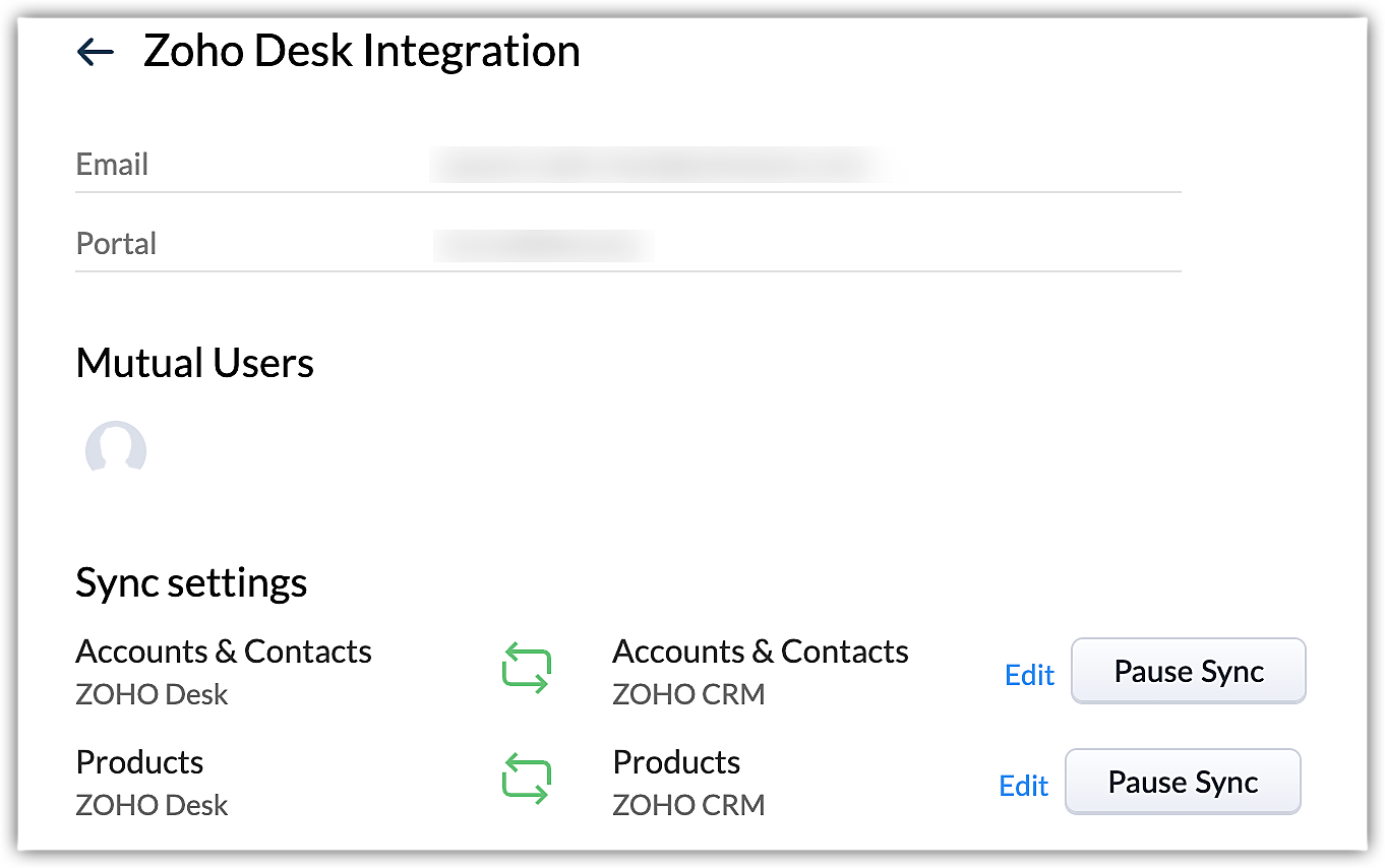 Quando il periodo di prova scade o si effettua il downgrade dell'edizione CRM alla versione gratuita, la sincronizzazione verrà sospesa e il trasferimento dei dati tra CRM e Desk non funzionerà più. Non sarà possibile visualizzare i dati correlati di Desk nel proprio account CRM e viceversa. L'integrazione può essere ripristinata effettuando l'upgrade del proprio account all'edizione a pagamento.