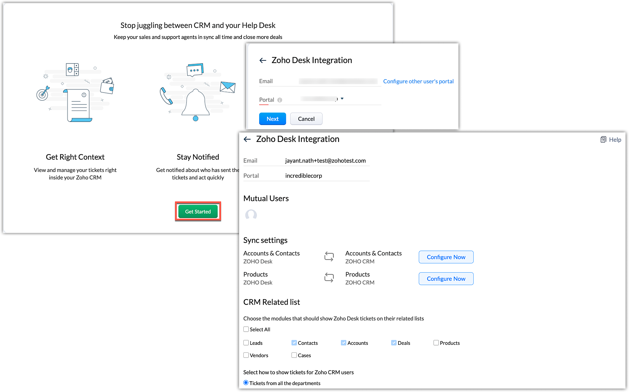 In Zoho CRM, navigare in Setup > Marketplace > Zoho > Zoho Desk > Seguire le istruzioni a schermo per completare l'integrazione.