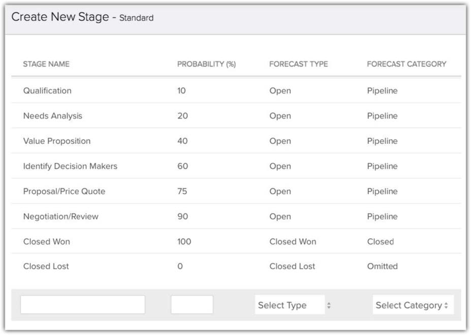 Se il processo di vendita viene modificato in qualsiasi momento, è possibile aggiungere o rimuovere fasi dalla pipeline. Le fasi rimosse da una pipeline non verranno eliminate dal CRM, saranno ancora disponibili nel costruttore di fasi.